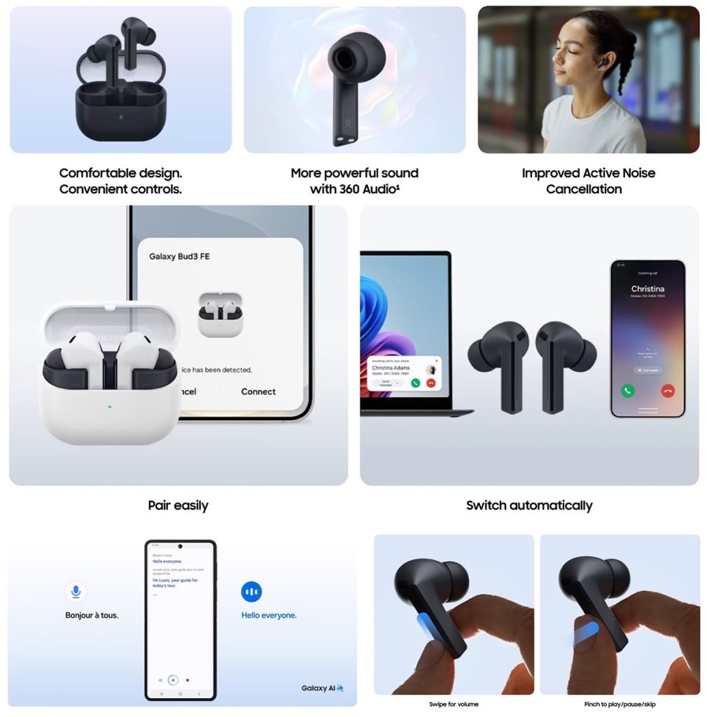 The Buds3 FE are equipped with larger speakers that promise deeper bass, crisp treble, and an overall richer audio experience. To enhance everyday listening, Samsung has included Enhanced Active Noise Cancellation (ANC), which effectively reduces background noise.