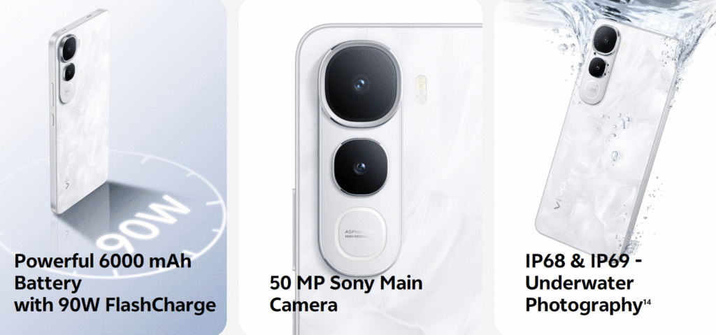 The vivo Y400 5G stands out as a compelling blend of style, performance, and smart engineering. With IP68 and IP69 ratings, it’s built to endure dust and water while offering a premium look in Glam White and Olive Green.