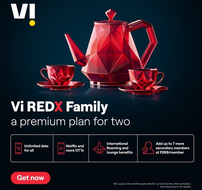 Vodafone Idea (Vi) has introduced its new REDX Family Plan, expanding its lineup of postpaid offerings with a focus on families. This all-in-one plan brings together unlimited 4G/5G data, international roaming perks, and a wide range of OTT subscriptions — all bundled under a single monthly bill.